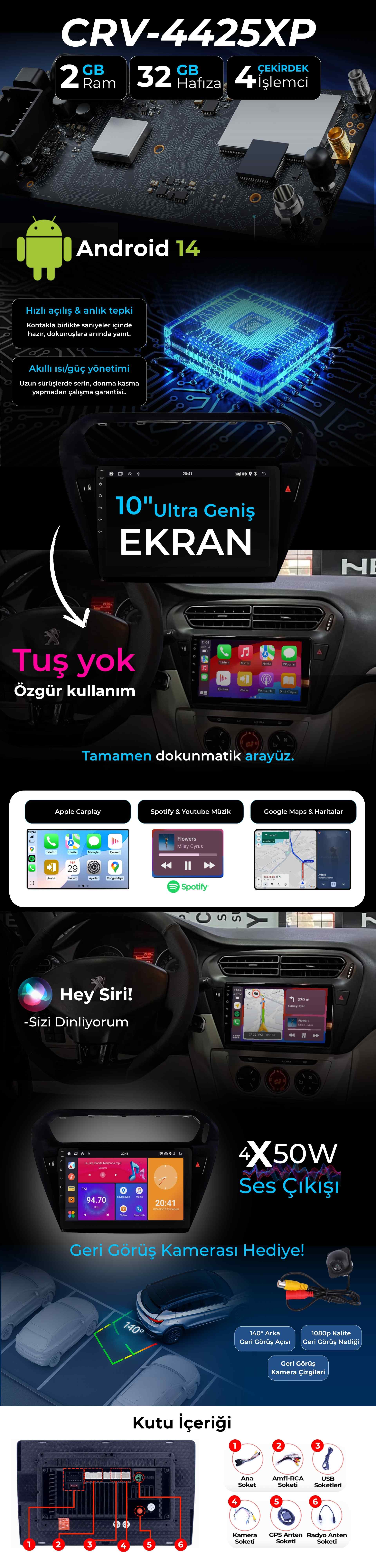 - Ekran: 720x1280 çözünürlükte 9 veya 10 inç (Araç Modeline Göre) MIPI panel ile HD görüntü kalitesi.