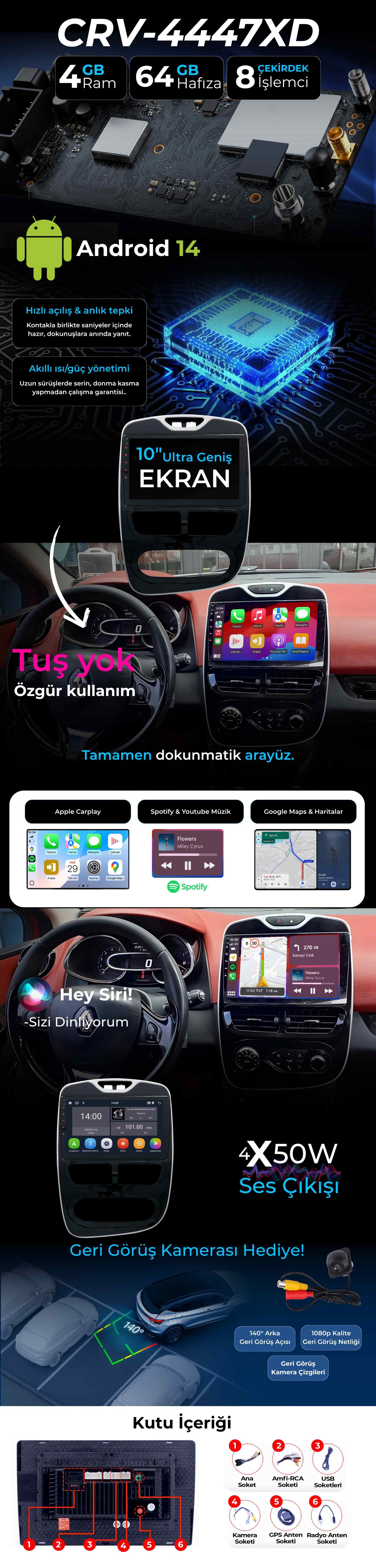 Renault Clio 4 Android Multimedya Sistemi (2013-2017) Renault Clio 4 Android Multimedya Sistemi (2013-2017) CRV-4447XD