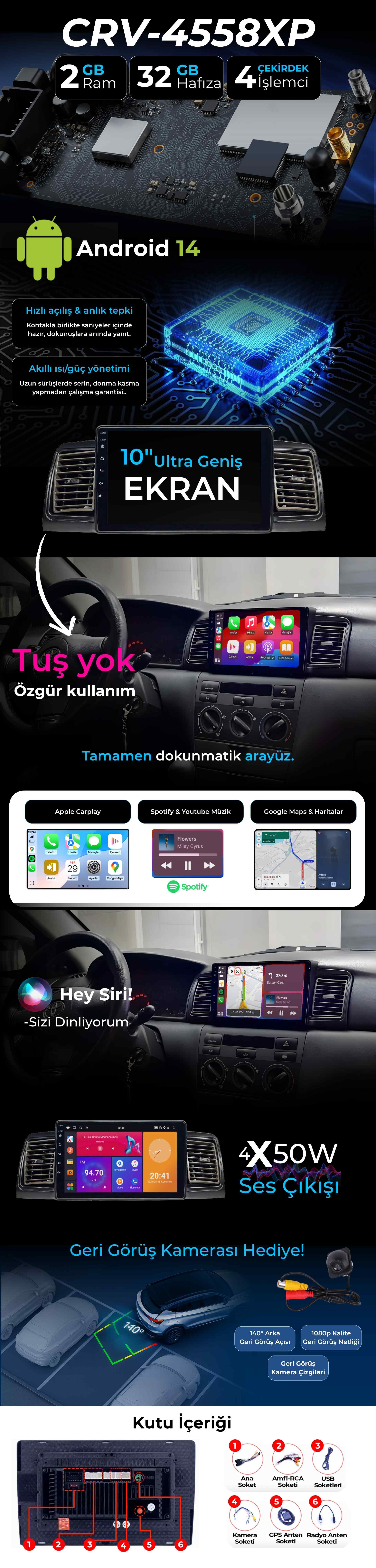 Toyota Corolla Android Multimedya Sistemi (2002-2006) CRV4558XP Toyota Corolla Android Multimedya Sistemi (2002-2006) CRV4558XP CRV4558XP