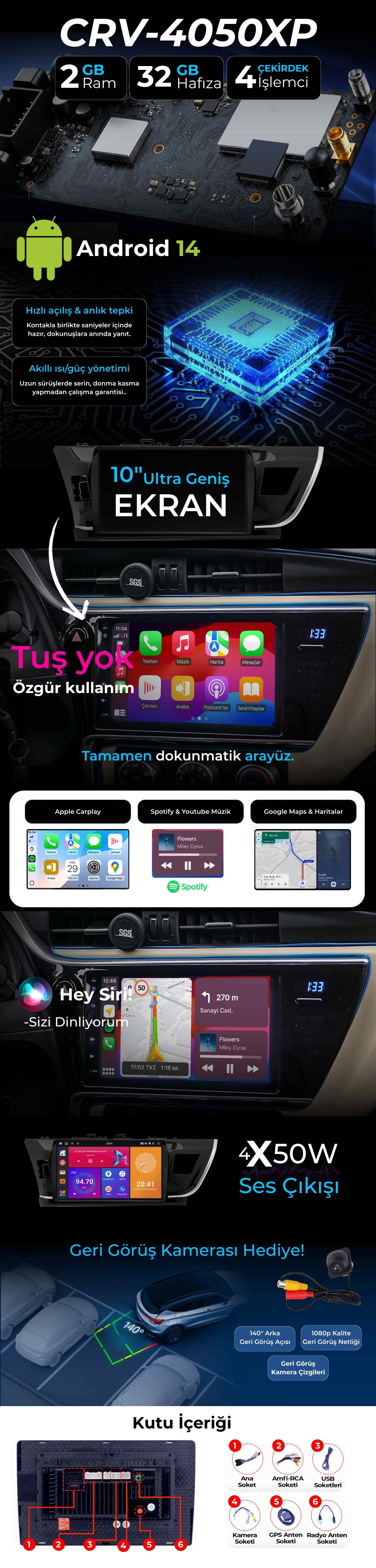 - Ekran: 720x1280 çözünürlükte 9 veya 10 inç (Araç Modeline Göre) MIPI panel ile HD görüntü kalitesi.