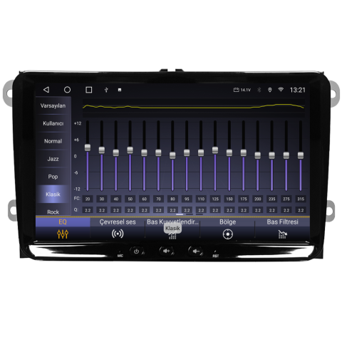 EQ Modu: Kullanıcı \ Normal \ Caz \ Pop \ Klasik \ Rock \ Ruh \ Vokal \ Ağır