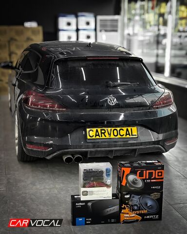 Volkswagen Scirocco için özel olarak hazırlanan bu ses sistemi paketi, performans ve estetiği bir araya getirerek araca adeta yeni bir kimlik kazandırıyor. Sistemin merkezinde yer alan HERTZ X165 ve DPK-165.3 hoparlörler, yüksek çözünürlüklü ses detaylarıyla kabin içinde olağanüstü bir netlik sunarken, Audison SR-5.600 amplifikatör ile her frekans güçlü ve dinamik bir şekilde işleniyor. Sisteme entegre edilen Connection FSK 350 kablolama altyapısı ise maksimum verimlilik ve kayıpsız sinyal iletimi sağlıyor.